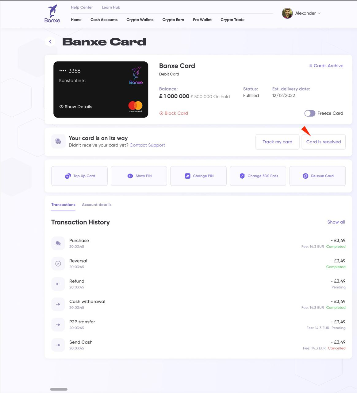 Log in to your Banxe account associated with the card you've ordered.